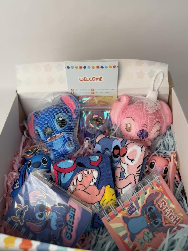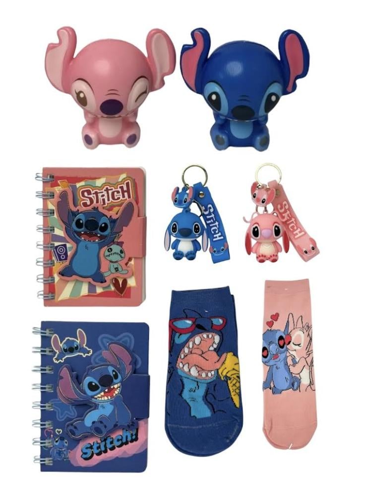 بوكس ستيتش 8 قطعسكوشي ستيتشسكوشي انجلسلسلة مفاتيح ستيتشسلسلة مفاتيح انجلدفتر مذكرة ستيتش ورديدفتر مذكرة ستيتش ازرقجوارب ستيتش ازرقجوارب ستيتش وانجل وردي+هدايا