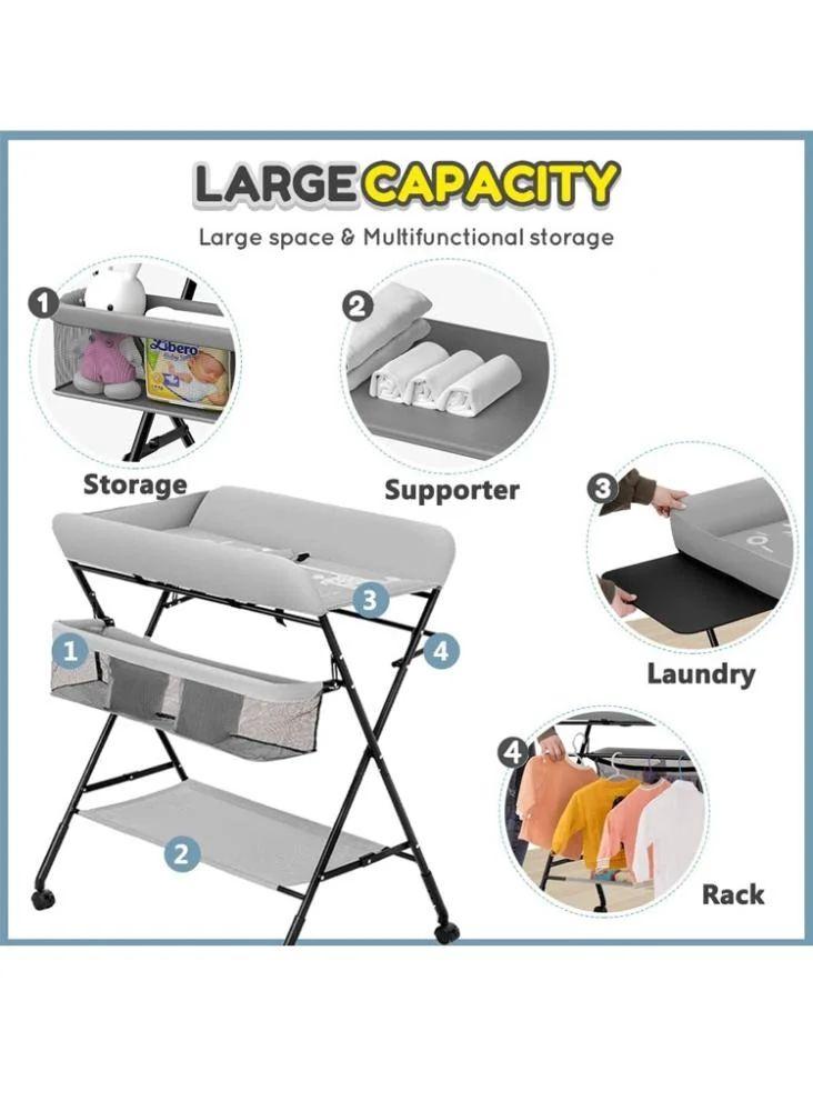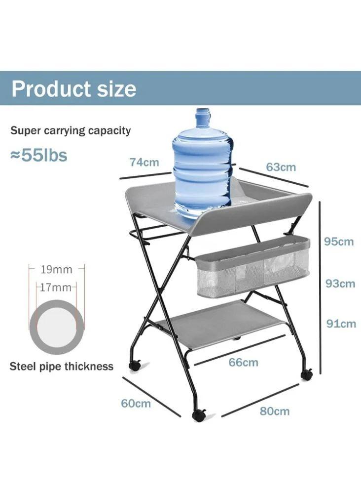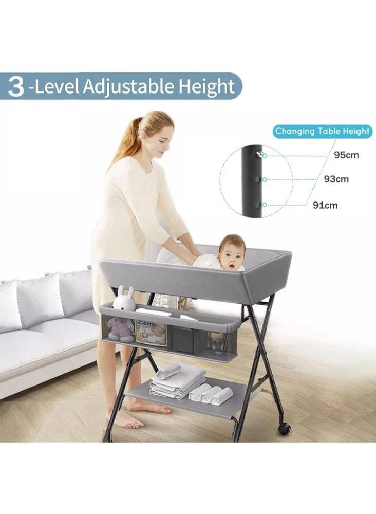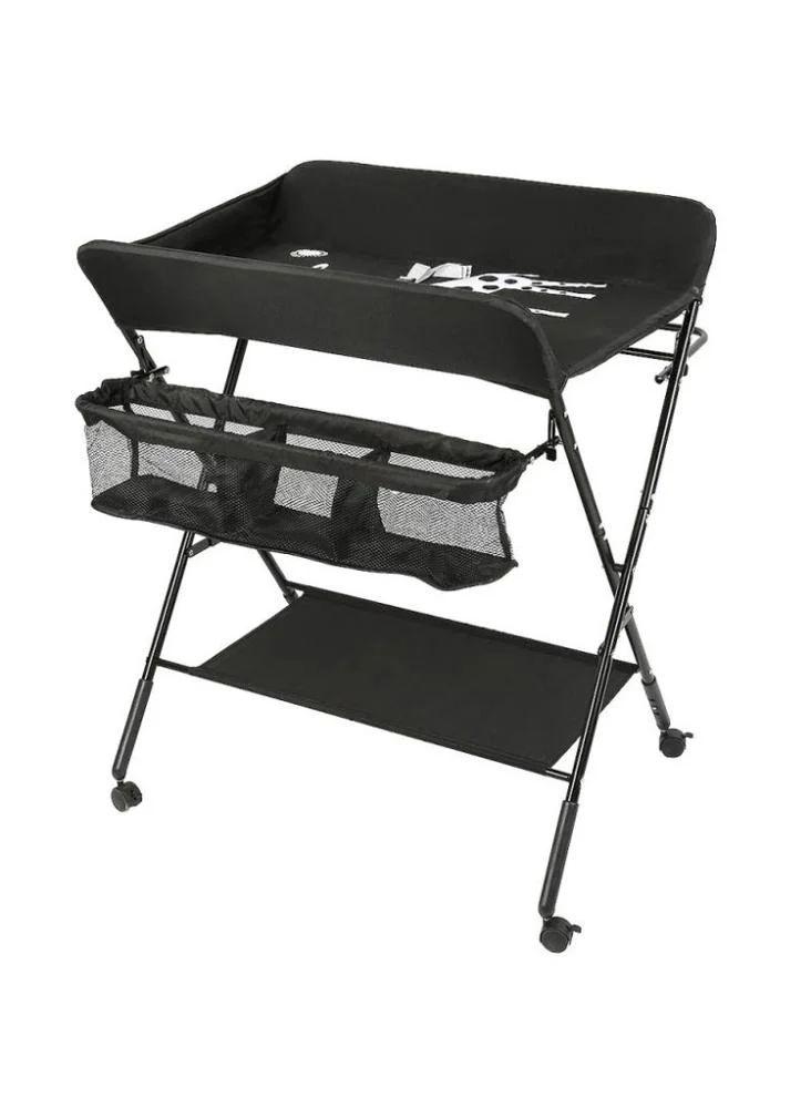 طاولة تغيير حفاضات الأطفال المقاومة للماء والقابلة للطي والمحمولة مع عجلات، منظم محمول لمستلزمات الأطفال حديثي الولادة (أسود)